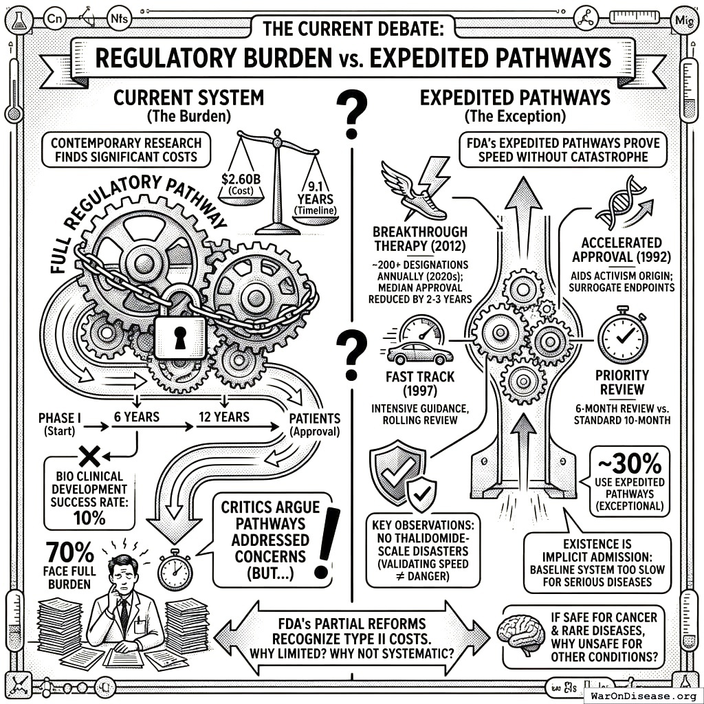 The FDA’s partial reforms prove the system recognizes Type II costs exist. The question is why the recognition is limited to a subset of diseases rather than systematically applied.