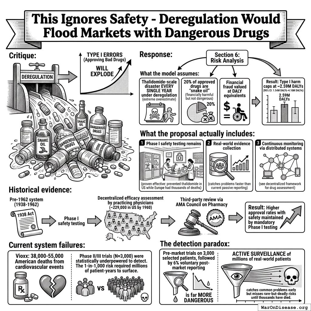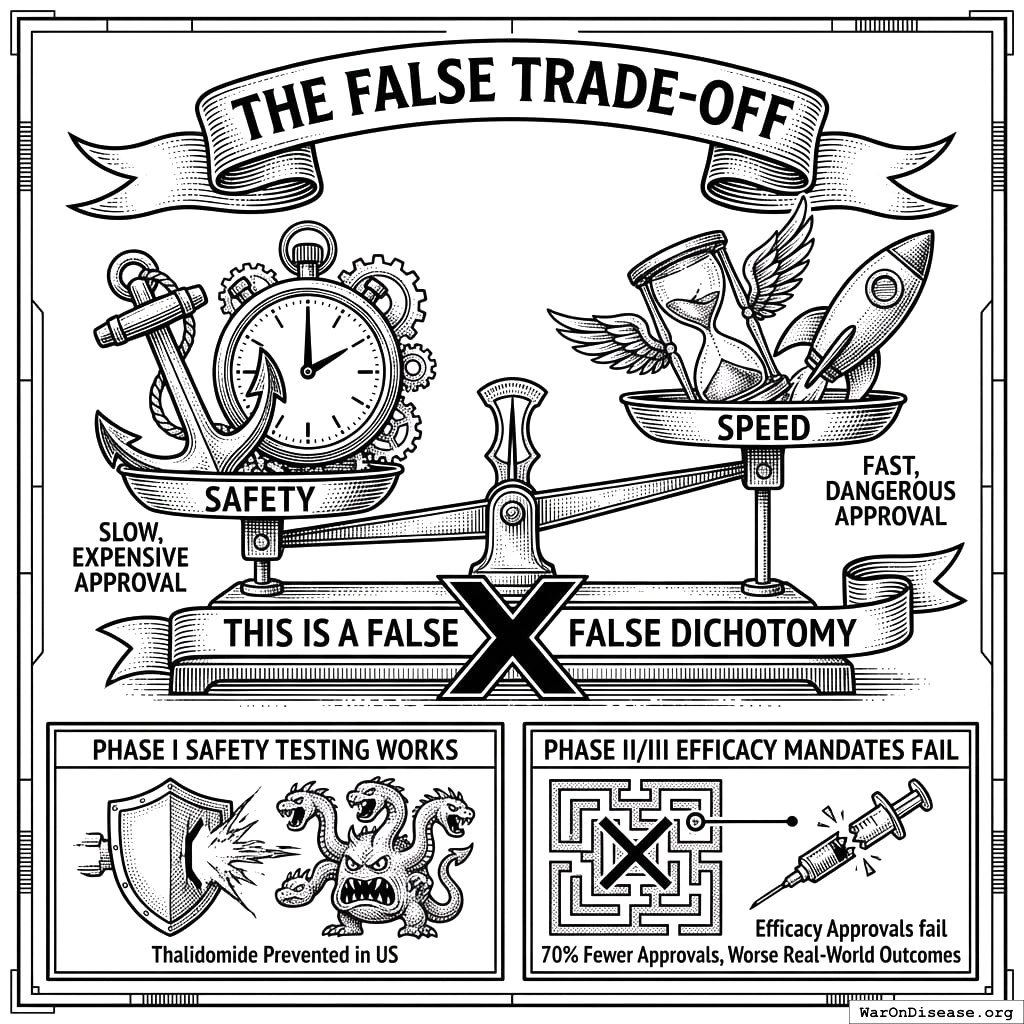 1. Phase I safety testing remains (proven effective: prevented thalidomide in US while Europe had thousands of deaths)