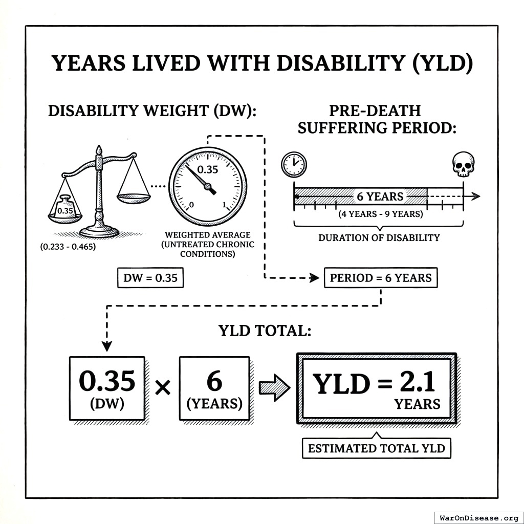 Combined, these represent 7.94 billion (95% CI: 4.43 billion-12.1 billion) Disability-Adjusted Life Years (DALYs) when adjusted for morbidity. All estimates include Monte Carlo confidence intervals.