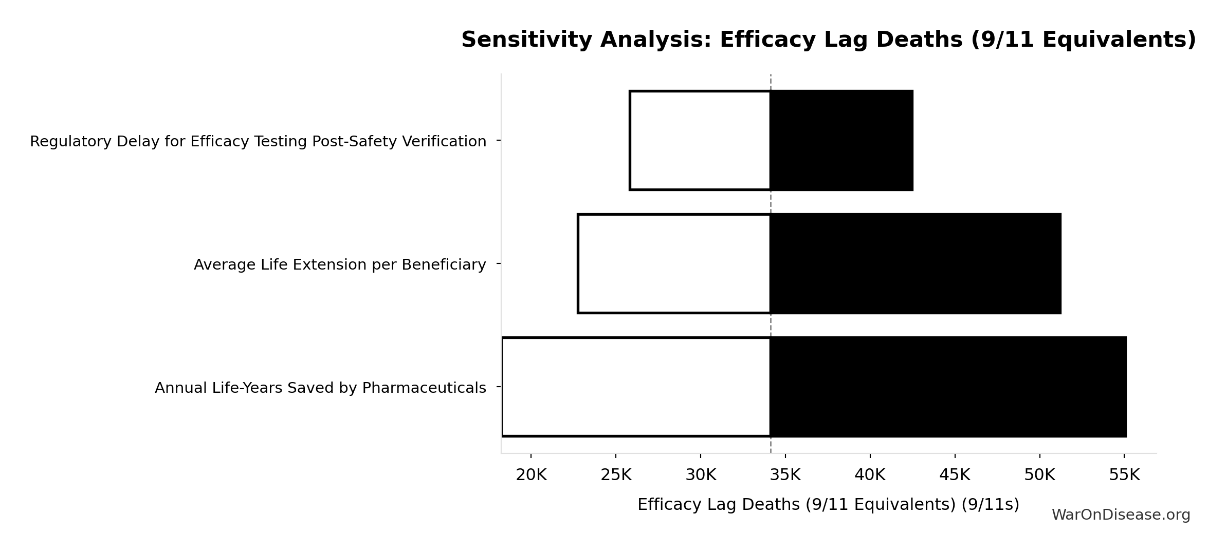 Simulation Results Summary: Efficacy Lag Deaths (9/11 Equivalents)