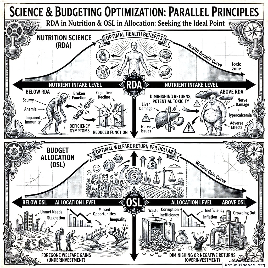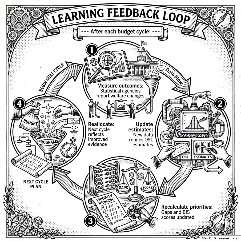 Every spending category’s OSL is ultimately justified by its expected impact on these two metrics. The gap analysis and priority rankings reflect which reallocations would most improve the combined welfare function.