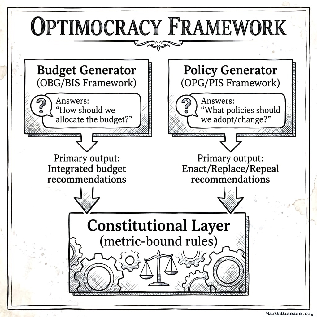 This specification focuses on generating evidence-based budget recommendations. Political implementation mechanisms are discussed separately in Incentive Alignment Bonds142.