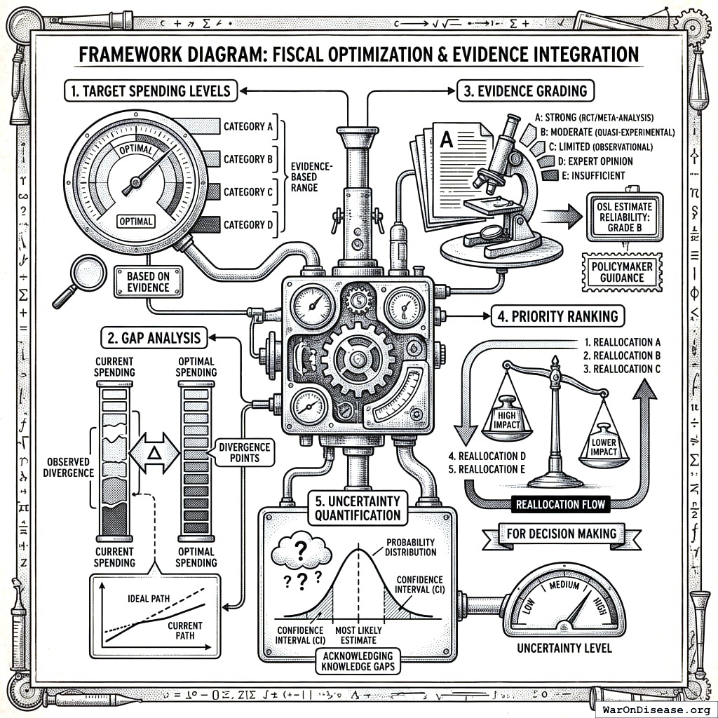 The result is a gap analysis showing which categories are underfunded relative to evidence-based optimal levels, enabling systematic reallocation from overinvestment to underinvestment. Applied to the US federal budget, the framework identifies pragmatic clinical trials as the most severely underinvested category (9,900% below optimal with 637 (95% CI: 569-790):1 benefit-cost ratio), followed by vaccinations, basic research, and early childhood education.