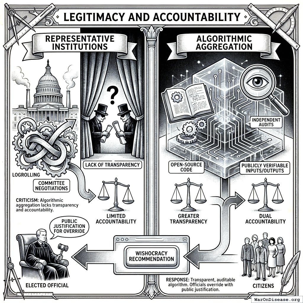 Representative democracy suffers from a fundamental principal-agent problem: elected officials systematically diverge from citizen preferences due to information asymmetry, special interest capture, and misaligned incentives. Meanwhile, direct democracy mechanisms reduce complex trade-offs to binary choices, losing crucial information about preference intensity. This paper introduces Wishocracy, a governance mechanism that addresses the democratic principal-agent problem by aggregating citizen preferences and creating accountability for elected representatives. The mechanism employs Randomized Aggregated Pairwise Preference Allocation (RAPPA), which presents participants with simple pairwise comparisons (‘allocate $100 between cancer research and infrastructure’) and aggregates millions of such judgments into preference weights that approximate utilitarian social welfare. Building on the Analytic Hierarchy Process141 for cognitive tractability and collective intelligence research11 for aggregation, RAPPA decomposes n-dimensional preference spaces into tractable binary choices while preserving preference intensity information. We present formal mechanism properties, computational complexity analysis, and empirical precedents from Porto Alegre’s participatory budgeting, Taiwan’s vTaiwan platform, and Stanford’s voting research. Rather than replacing representative democracy at the municipal level, we propose a federal-first implementation: (1) documenting the gap between citizen preferences and actual federal allocations, (2) creating public “Citizen Alignment Scores” for elected officials, and (3) integrating with Incentive Alignment Bonds142 to channel electoral and financial resources toward politicians whose voting records align with aggregated citizen preferences. This approach treats Wishocracy as an accountability mechanism that makes representative democracy work better, requiring no authority transfer, only information provision and incentive alignment.