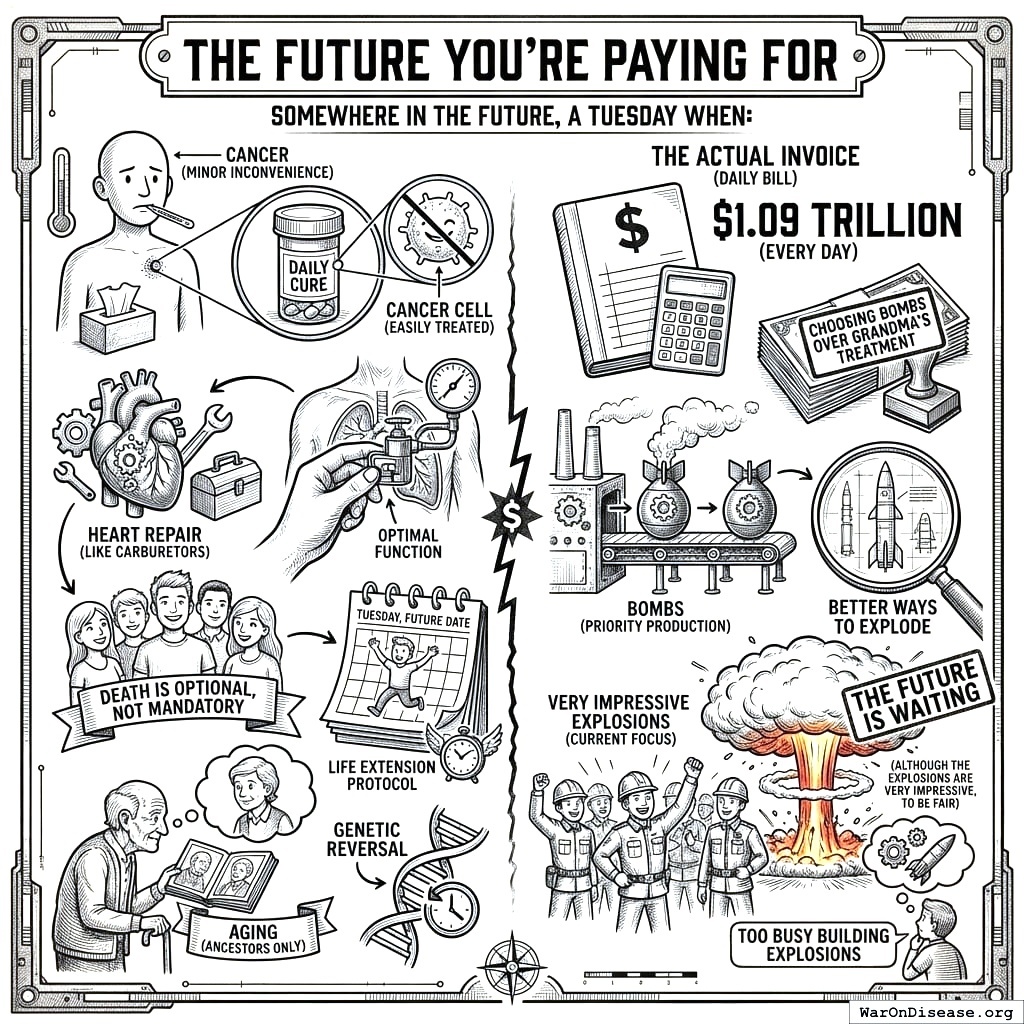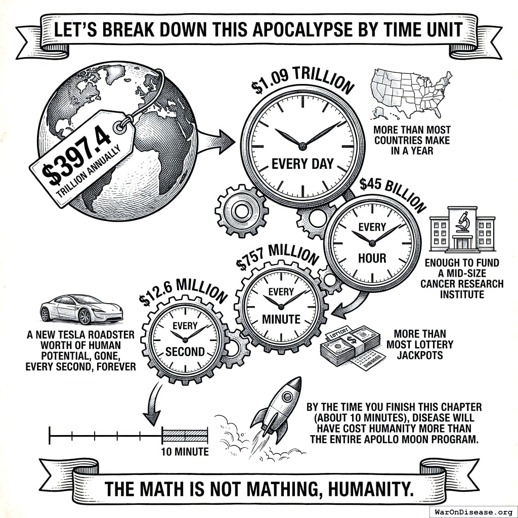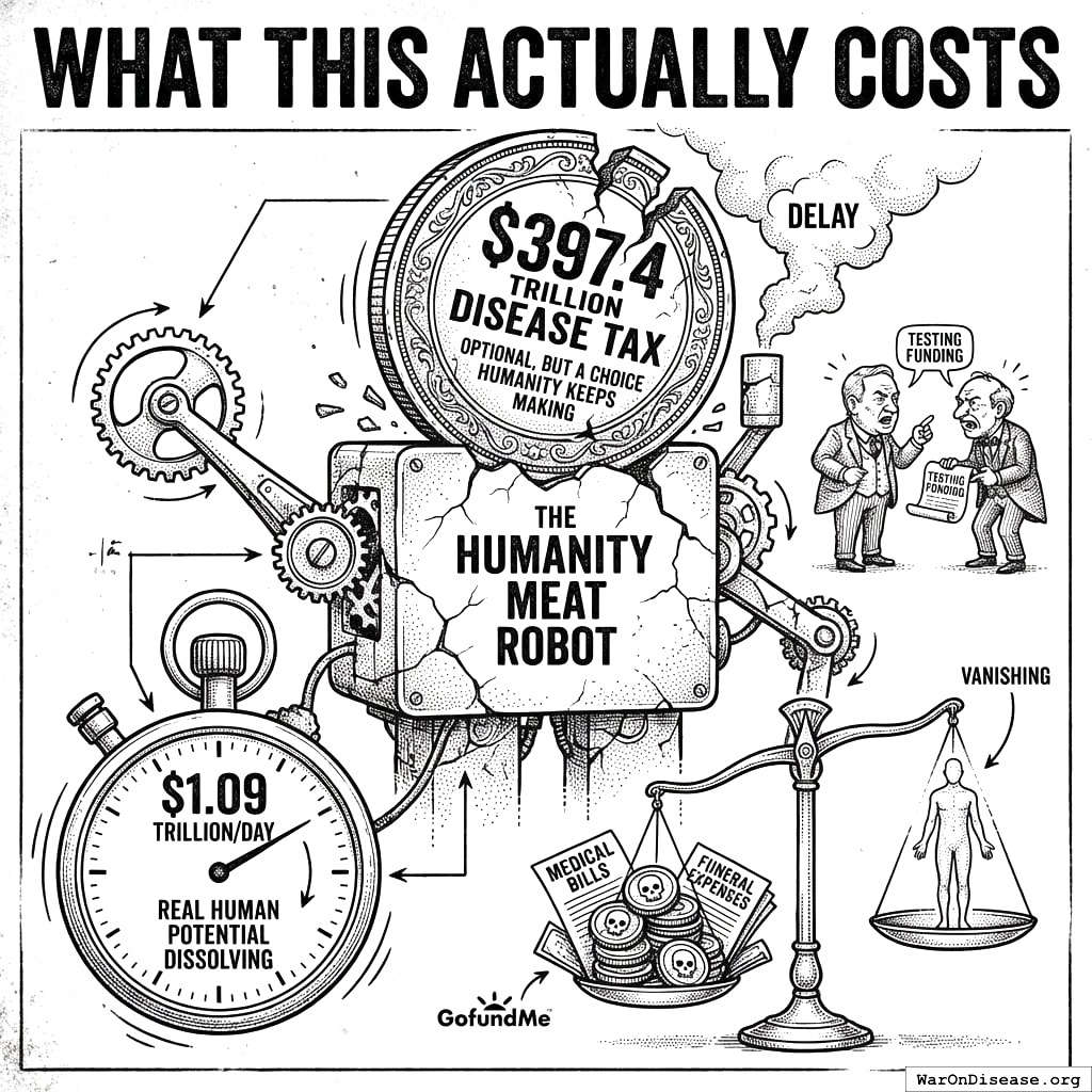 The Disease Tax: $1.09 trillion per day in lost human potential. You pay it every day. You get nothing. At least real taxes build roads.